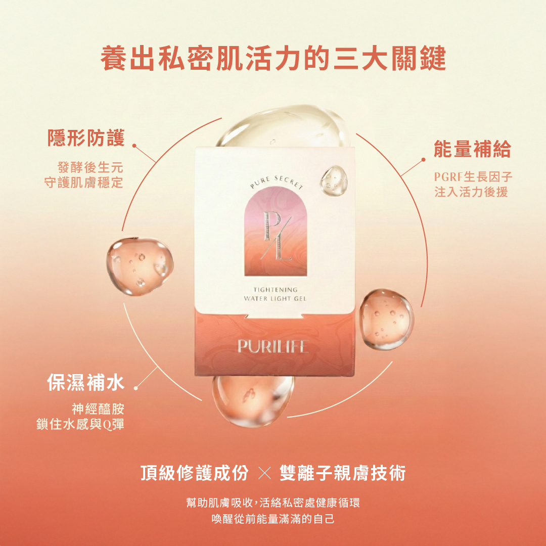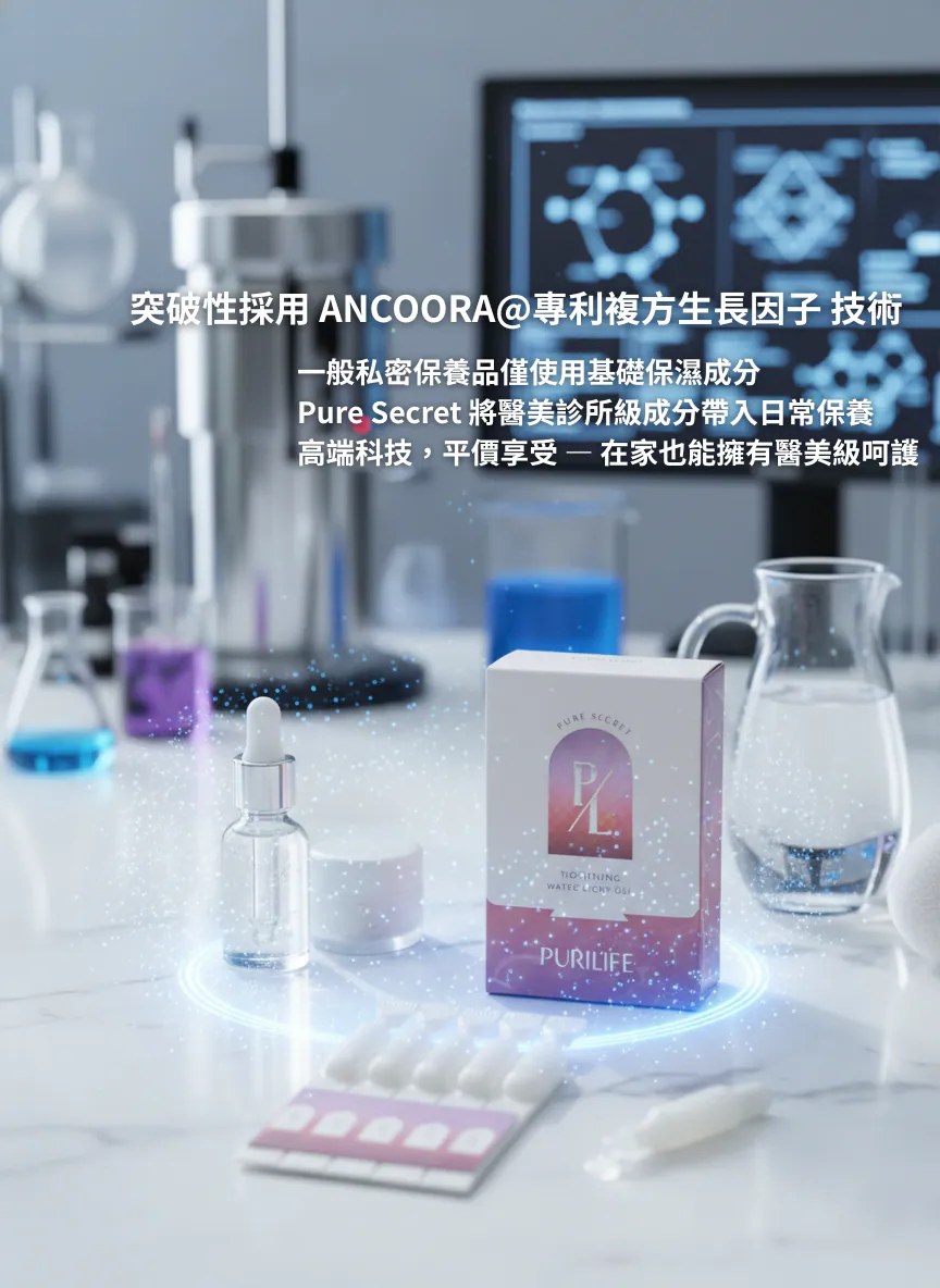 Pure Secret 緊密水光凝膠,將 ANCOORA® 專利複方生長因子概念配方(PRGF) 帶入日常私密肌膚保養。